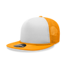 The Blank 2-Tone Flat Bill Foam Trucker Hat is a constructed, 5-panel cap with a white polyester foam front and a colored mesh back. It features an integrated cotton sweatband, a flat bill and an adjustable plastic snap closure.