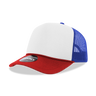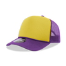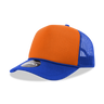 The 5-Panel High Profile Foam Trucker Hat, 3-Tone Colors is a 5-panel, two-toned cap with a foam front and rear mesh panels. It features an integrated cotton sweatband, a pre-curved bill and an adjustable plastic snap closure.