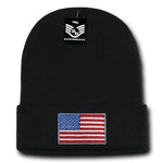 The America USA Flag Knit Beanie with cuff (R94) is a long beanie featuring an embroidery flag on the cuff, this soft beanie hat is great for the winter or everyday wear, features a form fitting design and is made from 100% Acrylic material. Available in USA flag and thin blue line Flag. Show your patriotic spirit with our new USA Flag Beanie.
