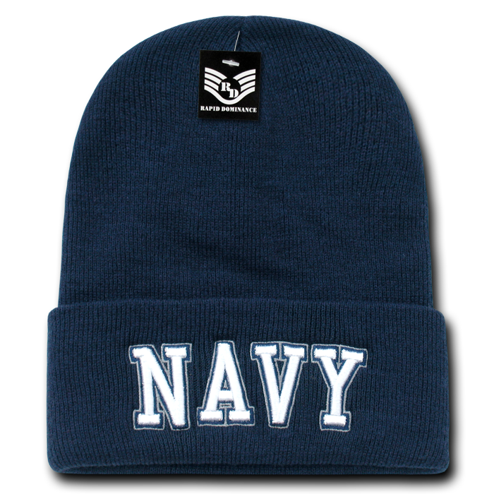 United States Navy Beanie, Navy Knit Cap, USN Beanie, Navy Text - Rapid Dominance S81