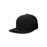 The Kids, Youth Trucker Hat, Flat Bill Snapback is a structured 6-panel cap specifically designed to fit youths. It features sewn eyelets, a retro flat bill, rear mesh panels, and a plastic snapback closure to ensure the perfect fit.