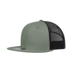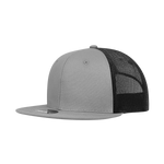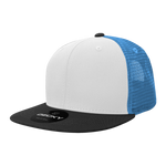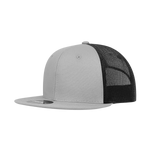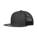 The 6-Panel Flat Bill Trucker Hat is a structured, 6-panel hat with insulated rear mesh panels. It has a retro flat bill, a vintage plastic snap closure and an integrated cotton sweatband.