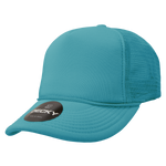 The Mid Profile 5 Panel Foam Trucker Hat, Solid Color is a 5-panel, constructed cap with rear mesh panels and a foam front. It features an integrated cotton sweatband, a pre-curved bill, and an adjustable plastic snap closure.