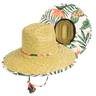 Classic straw lifeguard hat with floral and tropical print on underbrim. One Size Fits Most. Made by Goldcoast Sunwear, a Peter Grimm company.