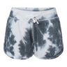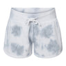 The J. America 8856 Ladies Triblend Fleece Short is a stylish 7.5 oz short made from 55% cotton, 39% polyester, and 6% rayon triblend fleece for a soft, breathable feel. The tie-dye version is made from 55% cotton and 45% polyester fleece. These shorts feature a 3" inseam, side hand pockets, and a dolphin hemline for a flattering fit. Off-white flat drawcords (white on tie-dye) and 1x1 ribbed cuffs and waistband provide a comfortable, secure fit. The tear-away label allows for easy customization.