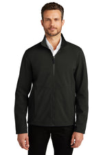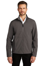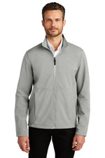 With a subtle mini ripstop texture, this stretch soft shell has double-needle stitching throughout and sleek design lines. The water-resistant film and DWR finish combine to resist wind and rain for weather protection.