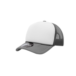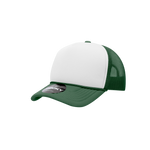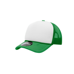 The Youth Foam Trucker Hat is a structured 5-panel baseball cap featuring rear mesh panels and a foam crown. Available in two-tone and solid colorways.