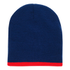 The Single Striped Knit Beanie (Decky 8007) is a short knit beanie with a colored trim along the bottom edge. This beanie is versatile, making it perfect for both everyday wear and colder weather.