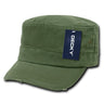 The Fitted Vintage GI BDU Cap Military Cadet Patrol Hat Distressed (Decky GR4) is a military inspired, BDU style, flat top cap that features brass eyelets and a distressed, torn vintage look.