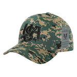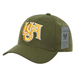 The USA America Baseball Hat (A14) features 3-D High Definition embroidery, pre-curved bill, cotton sweatband and is finished with an adjustable brass buckle closure. Mixed Inventory: 100% Cotton or 100% Acrylic.