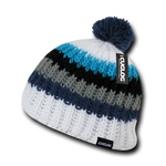 The Mont Ventoux Beanie, Knit Cap, Cable Knit with Pom Pom (Cuglog K028) is a thick, cable knit beanie featuring a 5-color striped pattern and a large pom pom at the top. This is a loose fitting beanie and is meant to be worn with a slouch.