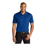 This performance polo is crafted from 100% recycled polyester pique for a smooth, comfortable feel and sustainable wear. Designed for active use, it resists snags, wicks moisture, and offers excellent UV protection. A smart choice for work or casual wear, with a clean design and rental-friendly durability.