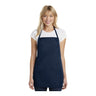 This medium-length apron offers a comfortable fit with an adjustable strap system for easy customization. Made from a durable poly/cotton blend, it provides practical protection for cooking, serving, or crafting tasks. Functional design with multiple pockets for convenience.