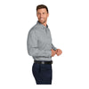 This long-sleeve nailhead shirt combines style and comfort for a polished business-casual look. Made from a soft cotton/recycled polyester blend, it resists wrinkles and offers easy care. Subtle two-color pattern adds a professional touch for everyday wear.