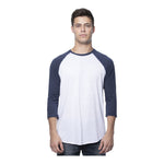 This unisex raglan baseball shirt is made from a comfortable blend of polyester, combed ring-spun cotton, and rayon. Featuring 3/4 sleeves and a rounded bottom, it offers a stylish and relaxed fit. Perfect for casual wear or customization, this shirt is proudly made in the USA.