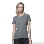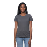 This women’s t-shirt is made from a sustainable blend of 70% viscose bamboo and 30% organic cotton, offering a breathable, cooling effect and moisture-wicking properties. Designed for comfort and style, it features a ribbed collar, tape shoulder-to-shoulder, and side-seamed construction. Made in the USA, this tee is a great option for casual wear or layering.