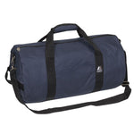 - A basic round duffel in a 20-inch round size with zippered main compartment