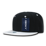 The Lot of 12 Decky Snapback Hats Flat Bill Caps 2-Tone Color Bulk is a 6-panel, constructed cap and features stitched eyelets and a retro flat bill. Add a little vintage flair to your style. Comes with a vintage plastic snap back closure.