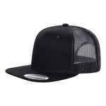 - Classic 6-Panel Flat Bill Trucker Cap with Mesh Back