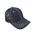 For a stylish wearable that is sure to mesh with your promotional efforts, look no further than this denim/mesh cap! This fashionable product is made from a blend of cotton (65%) and polyester (35%). It is unstructured and features a low profile, six panels, a mesh back, a frayed bill, contrasting stitch and under bill, and a self-fabric strap with hook and loop closure.