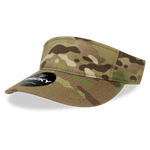 The MultiCam Camo Visor, Sun Visor Camouflage is a structured visor perfect for protection against the sun and outdoor activities. It's made of a ripstop material and features an integrated cotton sweatband, pre-curved bill, and adjustable hook and loop closure.