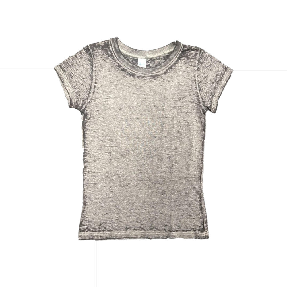 The 22510BO youth girls' tee offers a soft, worn-in feel with a stylish burnout wash design. Made from a comfortable cotton-poly blend, this tee features a ribbed collar, coverstitched neckline, and durable double-needle hems for added strength. Made in the USA.