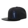 The Melton Vinyl Snapback, 6 Panel Vinyl Flat Bill Cap is a structured 6 panel cap featuring a wool, melton crown and a vinyl bill. This cap features an integrated cotton sweatband, stitched eyelets, a retro Vinyl flat bill and is finished with a plastic snapback closure.