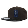 The Vinyl Brim Snapback Hat, 6 Panel Vinyl Snapback Cap is a structured 6 panel cap featuring a unique vinyl bill. This cap has an integrated cotton sweatband, stitched ventilation eyelets, a retro vinyl flat bill and is finished with a plastic snapback closure.