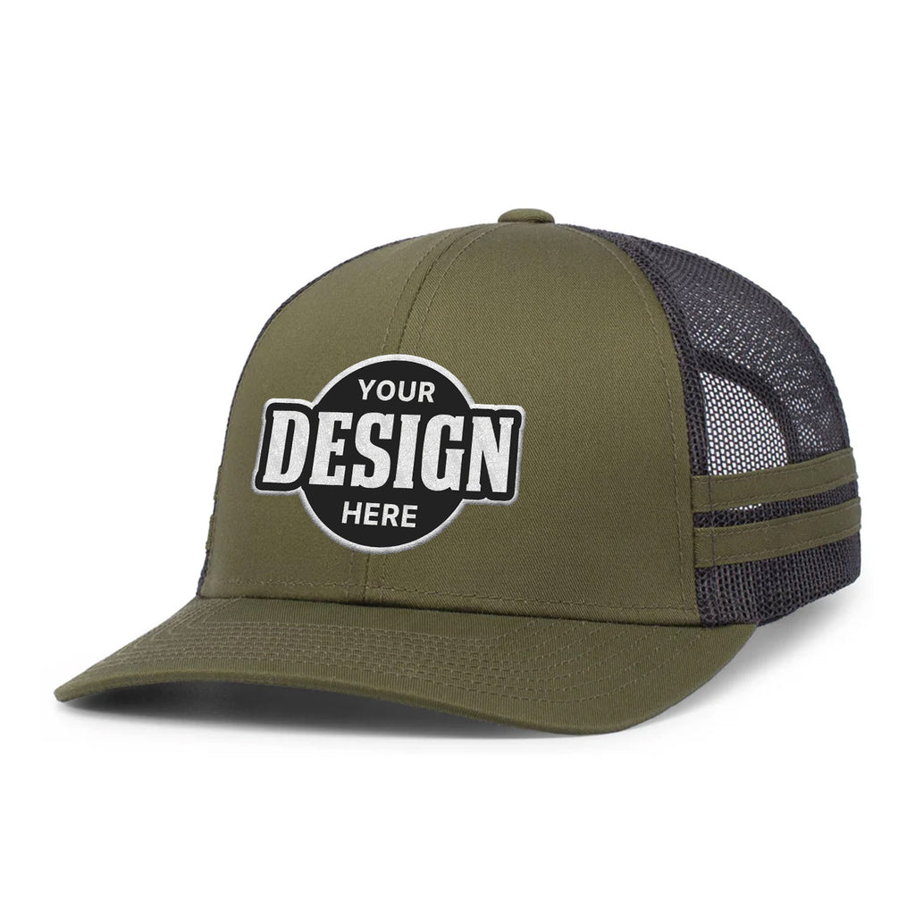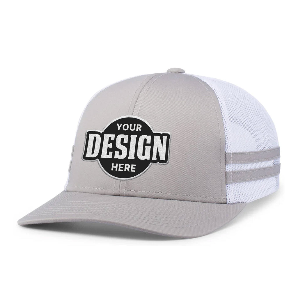 ADD YOUR OWN LOGO/DESIGN/TEXT Get Custom Quote Custom Embroidered Pacific Headwear P115 Low-Profile Stripe Trucker Cap - Flat Embroidery