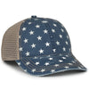 The stars, modern cheetah, or polka dot designed caps offer a chic and stylish option, and each cap's tea stain is unique. This is a stand out look for your customer's business. Everything you know and love about the OC801, now with printed front panels in three different patterns. The heavy decorative stitch matches the tea stain mesh on each cap.