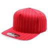 The PB328 5-Panel Pinstripe Snapback Hat in Red blends a white pinstripe pattern with a clean 5-panel fit and an adjustable snapback closure, creating a sharp, standout accessory for any streetwear outfit.