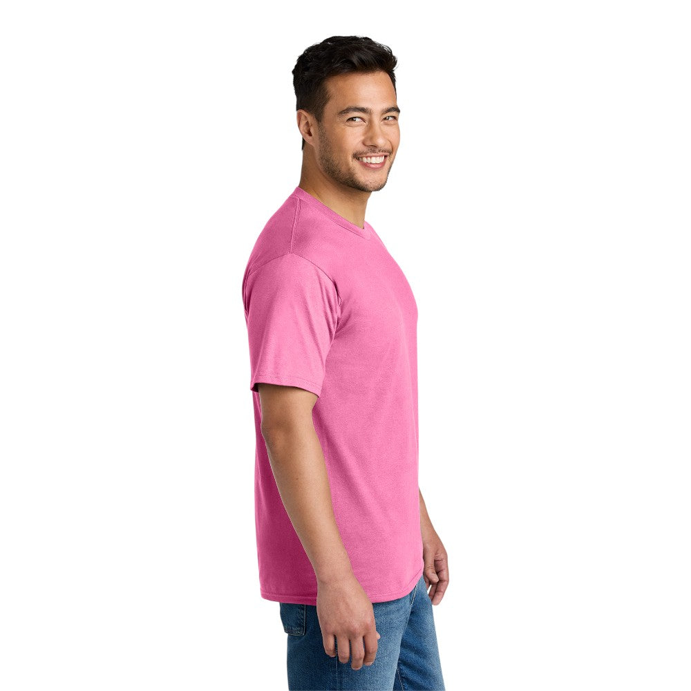 The Port & Company™ Bouncer Tee is a wardrobe essential designed for those who value comfort and quality. Made with a heavier 6-ounce fabric and a roomier fit, it offers a relaxed yet durable style perfect for everyday wear. The combed ring spun cotton ensures a soft, premium feel with added strength.