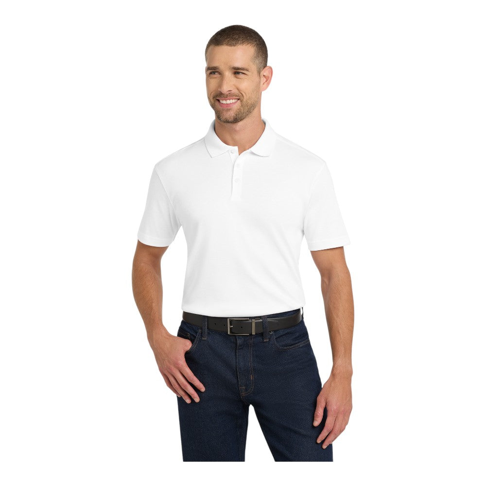 Silky smooth to the touch, this interlock polo offers professional performance and all-day comfort. Made from a poly/cotton blend, it wicks moisture and fights odor to keep you fresh. Wrinkle-resistant fabric ensures a polished look, whether at work or on the weekend.