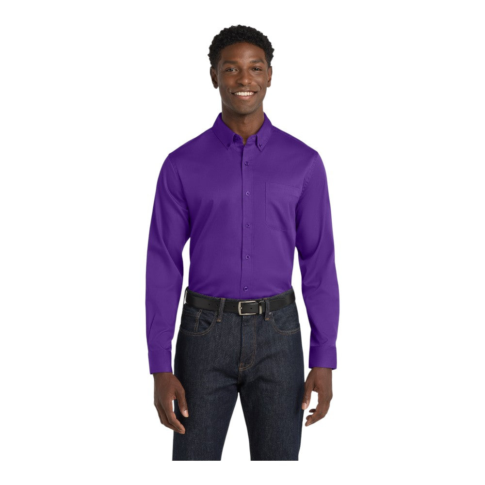 This long-sleeve shirt is designed for professional performance with a smooth, soft fabric that is comfortable year-round. Easy care and wrinkle-resistant, it keeps you looking polished while handling everyday wear. Ideal for work or business settings.