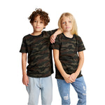 The 17221CMO youth tee features a classic camo print on a soft and durable cotton-polyester blend. Designed with a set-on rib collar, coverstitched neckline, and double-needle hems, it offers lasting comfort and style. Transitioning from satin to tear-away labels based on customer feedback. Made in the USA.