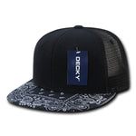 The Bandanna Bill Trucker Hat, 6 Panel Paisley Trucker Cap is s a 6-panel, constructed cap featuring a colorful and unique paisley design on the bill. It has mesh rear panels, a retro flat bill and a plastic snapback closure to ensure a perfect fit.