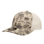 The Mid Profile Tropical Trucker is a 6 panel structured cap featuring a tropical design. It has an integrated cotton sweatband, stitched ventilation eyelets, mesh back panels, and a pre-curved bill. The cap is finished off with a plastic snapback closure.