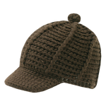 The Reggae Cap, Knit Beanie Hat (Decky 624) is a hand-knit, acrylic beanie featuring a short pre-curved visor and a crown knot.