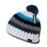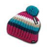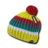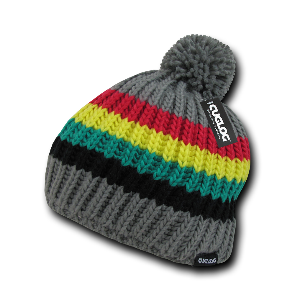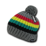 The Mont Ventoux Beanie, Knit Cap, Cable Knit with Pom Pom (Cuglog K028) is a thick, cable knit beanie featuring a 5-color striped pattern and a large pom pom at the top. This is a loose fitting beanie and is meant to be worn with a slouch.