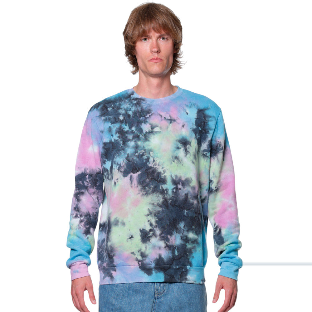 The 3499GLX unisex sweatshirt features a vibrant galaxy tie-dye design, crafted from a soft and durable cotton-poly blend. With a set-on rib collar, ribbed sleeve cuffs, and a bottom band, this sweatshirt offers both comfort and style. Made in the USA.