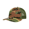 The 6-Panel Curve Bill Trucker Cap (1053) is a constructed, 6-panel baseball hat with rear mesh panels. It has a curved bill and a vintage plastic snap back closure.