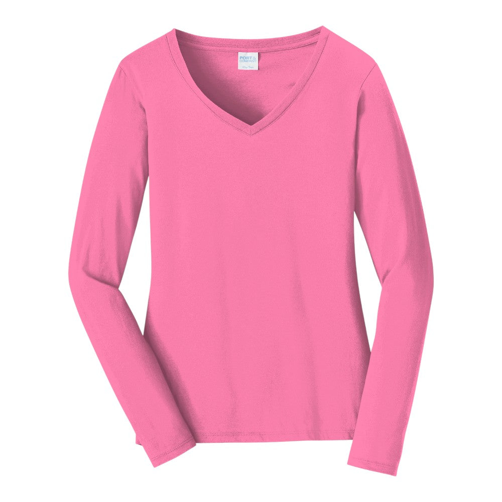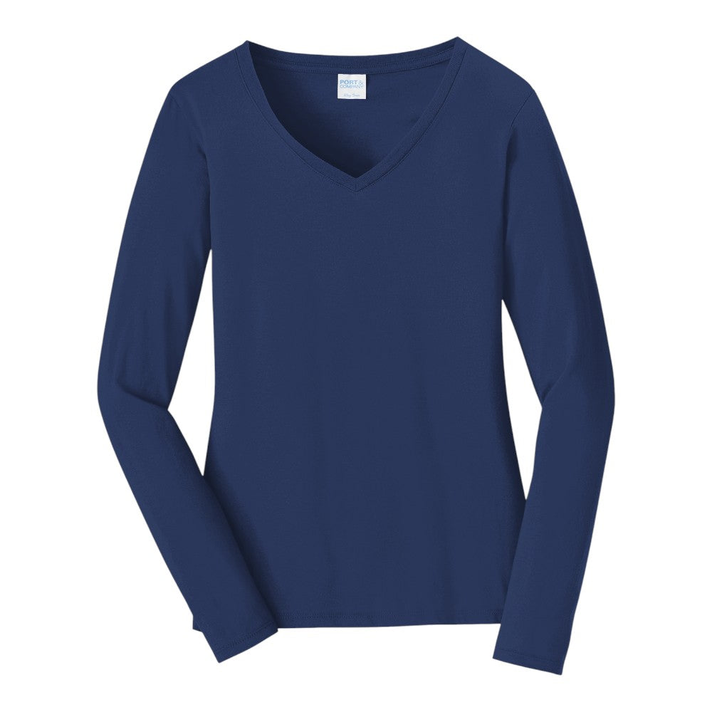 ADD YOUR OWN LOGO/DESIGN/TEXT Get Custom Quote Port & Company LPC450VLS Women’s Long Sleeve Fan Favorite V-Neck Tee