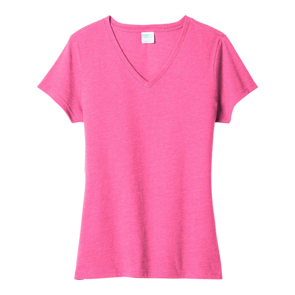 Show your style and spirit with the Port & Company Women's Fan Favorite™ Blend V-Neck Tee. Designed for comfort and a flattering fit, this ultra-soft ring spun cotton/poly blend delivers both durability and a smooth, lightweight feel. Whether you're cheering for your team or relaxing on the weekend, this V-neck tee keeps you looking and feeling your best.