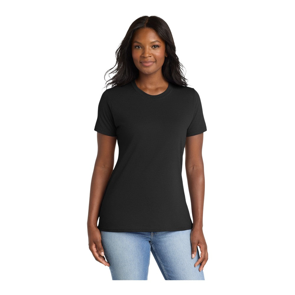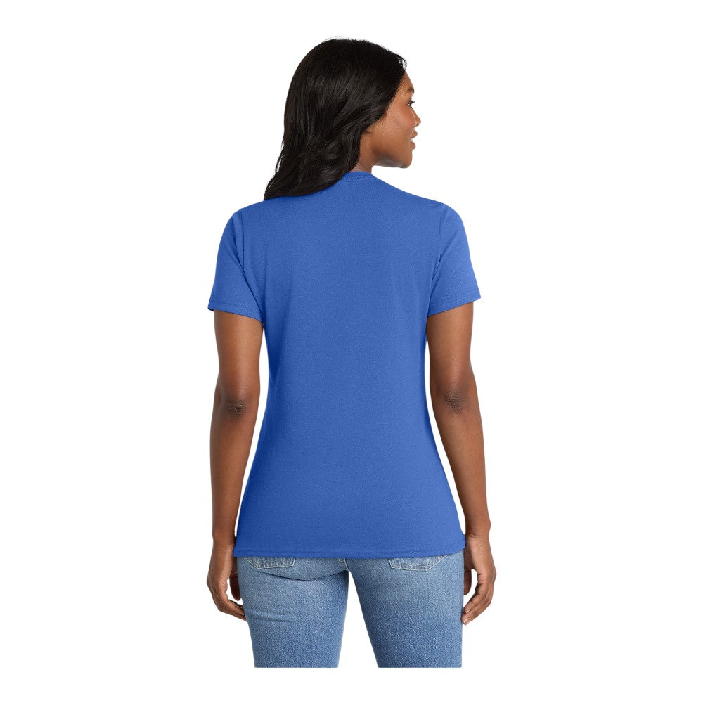 The Port & Company LPC55 Women's Core Blend Tee is a dependable everyday essential, combining softness, comfort, and long-lasting durability. Made with a cotton-poly blend that includes up to 5% recycled polyester, this tee is both eco-conscious and stylish. The contoured side seams provide a feminine fit, making it a great choice for teams, groups, or casual wear.