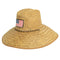 Classic straw lifeguard hat with US flag patch. One Size Fits Most. Made by Goldcoast Sunwear, a Peter Grimm company.