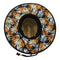 The Lifeguard Straw Hat features floral or leaf fabric print under brim. It comes with elastic sweatband for fit. Made with 100% straw. One size fits most.