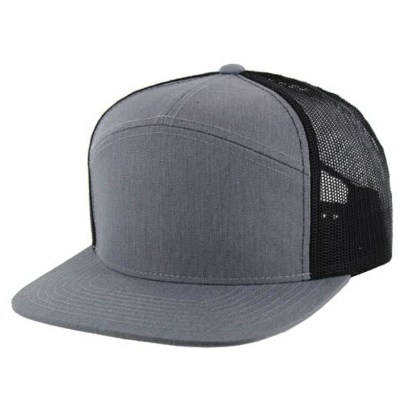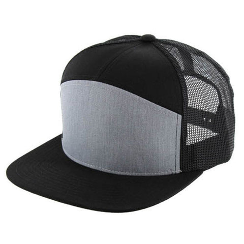 This 7-panel trucker hat, made from robust T/C twill fabric, features a breathable mesh back and a structured fit for lasting comfort. Its blank canvas front is ideal for branding and custom embroidery, perfect for personal or promotional use.