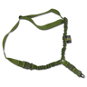 The RAPDOM Tactical Single Point Sling is designed to secure your assault rifle with a flexible, high density dual bungee construction sling, this low profile single point sling is perfect for any tactical duties. features adjustable 1 1/4 inch webbing strap, 3 release Duraflex buckles, elastic covered carabineer to securely attach and detach from your rifle and dual covered bungee cords.