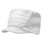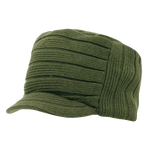 The Knitted Flat Top Cap with Visor, Knit Beanie (Decky 615) is a stylish, knitted cap featuring a flat top, thick ribbed construction, and short visor.
