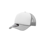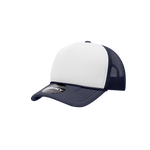 The Youth Foam Trucker Hat is a structured 5-panel baseball cap featuring rear mesh panels and a foam crown. Available in two-tone and solid colorways.